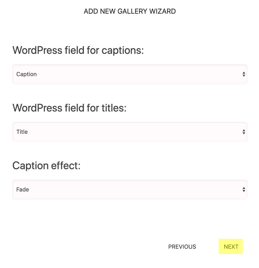 続いて、ギャラリーの画像に表示させるタイトルやキャプションなどを選べる。